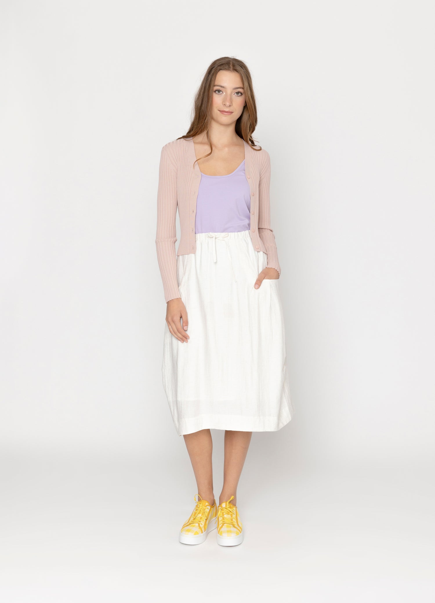 Cosy meets chic in the Mia Cardigan! Lightweight but warm, it’s ideal for layering on cooler days or throwing over a tee for extra style points. Available in a rainbow of shades—from stripe to dusky pink—you’ll always have the perfect one to match your outfit. Whether it’s jeans and boots or a flowy dress, Mia’s got your back.